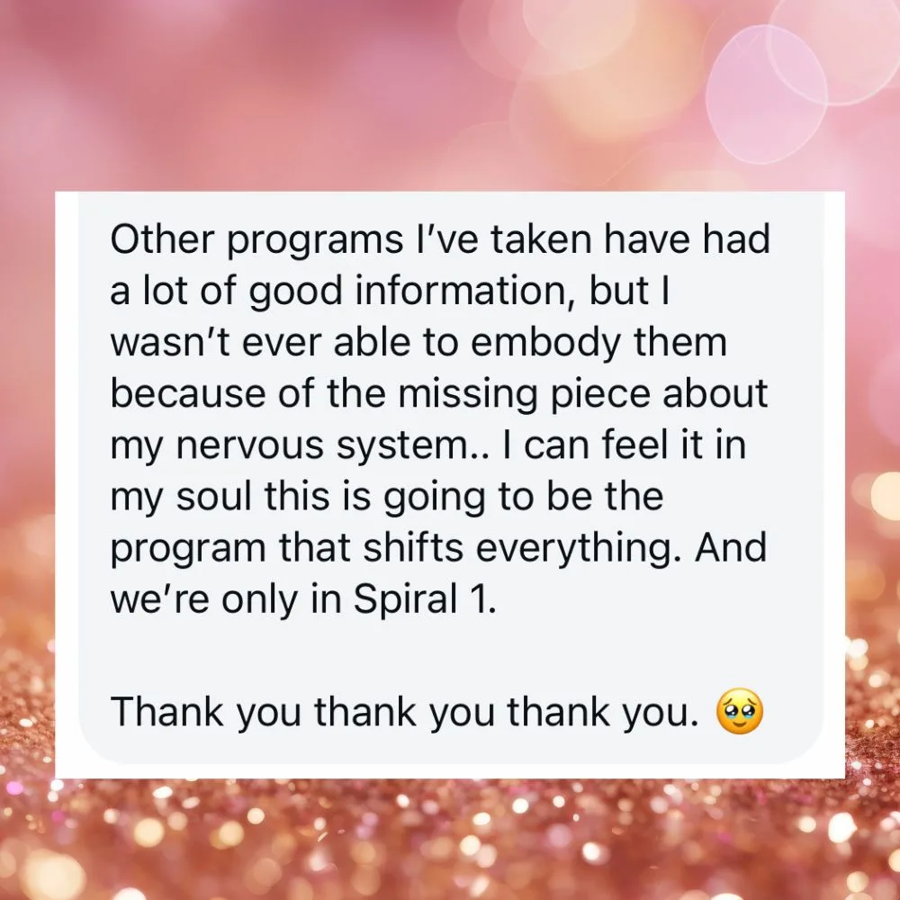 The journey begins with YOU. In Spiral 1, you’ll be initiated at a deeper level in your own personal healing— specifically understanding how the nervous system works, cultivating safety in your body to FEEL & loving your inner parts.