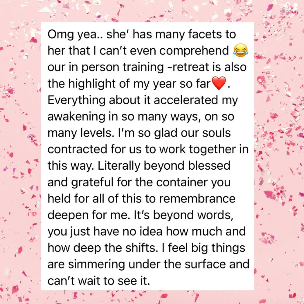 Between 2023-2025, this training was also called the Kundalini Codes Activation (KCA) Facilitator Training, when the focus was more on the frame of Kundalini activation 🥰